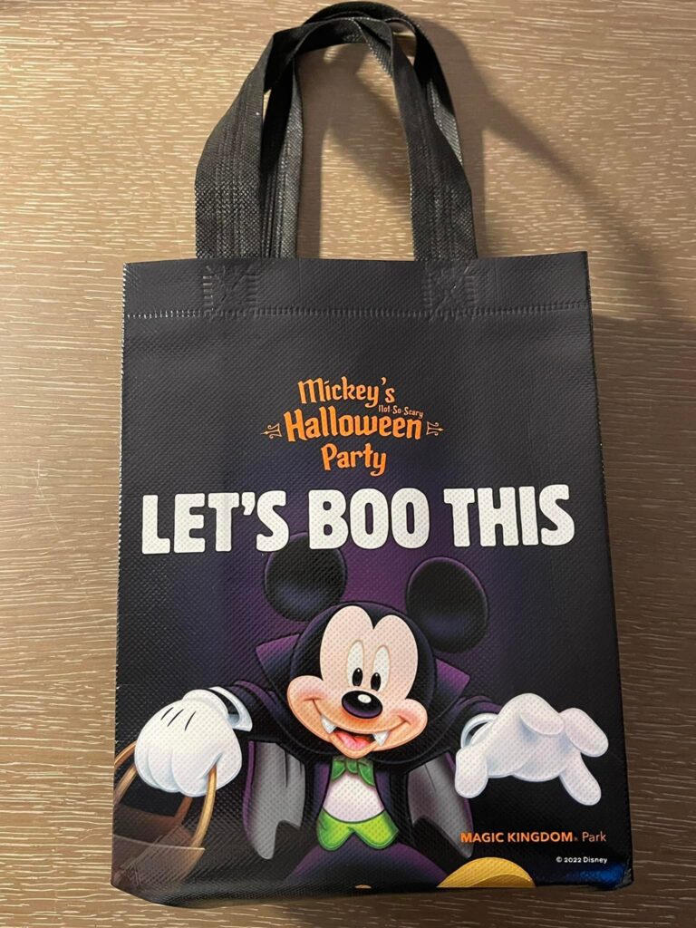 Cast Members will be dressed up in their party costumes and stationed at several trick-or-treat stations around the park. You will receive a small, complimentary bag when you get your party bracelet that you can use. We recommend bringing a larger or additional bag as they are very generous handing out treats like M&Ms, snickers, starburst, and more!