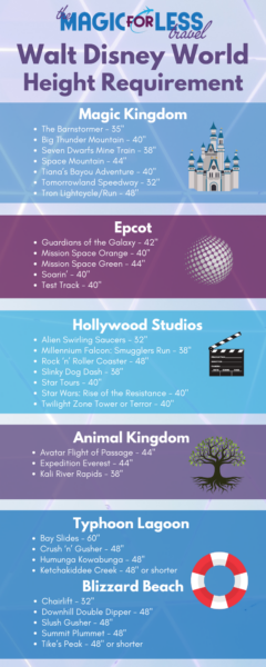 Walt Disney World can be great for the whole family, but some attractions require a certain height to keep little ones safe. Families with young children will be glad to know that many attractions have no height requirements! Your whole family can enjoy attractions together. We share a list of the current attractions with height requirements at Walt Disney World. You can even download our free Disney Height Requirements chart to help with your planning.